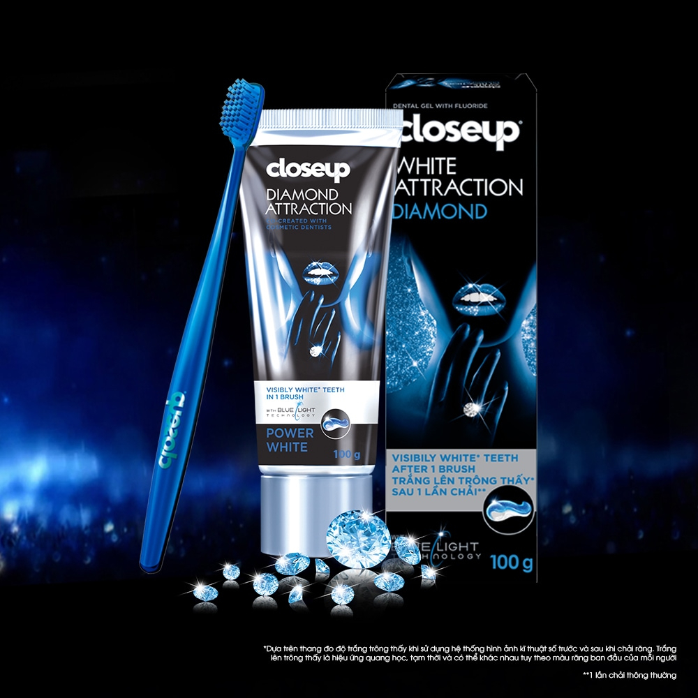 Kem Đánh Răng Closeup Làm Sáng Răng Kim Cương 100Grr là sản phẩm làm sáng răng đến từ thương hiệu closeup thuộc tập đoàn Unilever của Mỹ, với công nghệ Ánh Sáng Xanh độc đáo giúp răng trắng sáng và nụ cười như ánh kim cương chỉ sau một lần chải. Mang lại sự tự tin, lôi cuốn trong cuộc sống hiện đại và năng động.