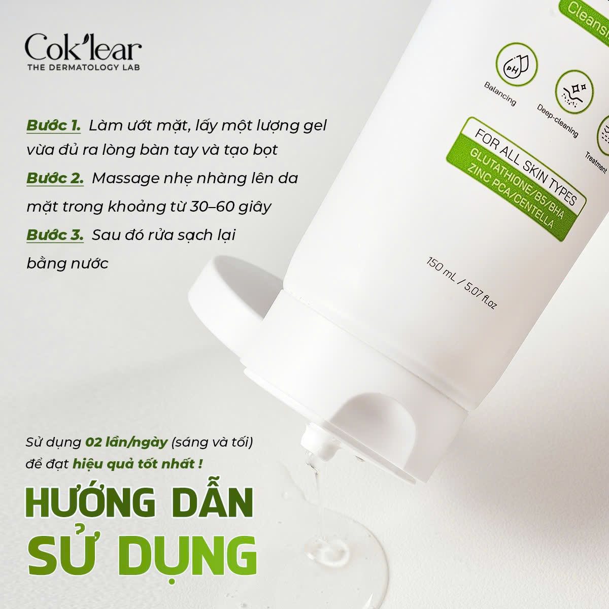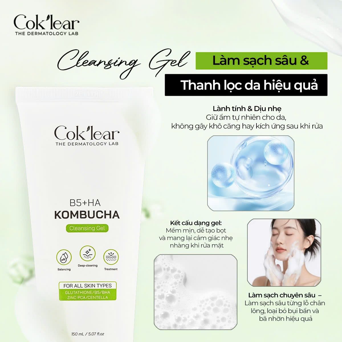 Khác với các dòng sữa rửa mặt tẩy rửa mạnh, Sữa rửa mặt CoK’lear tập trung vào việc duy trì sự cân bằng và phục hồi hệ sinh thái trên da: