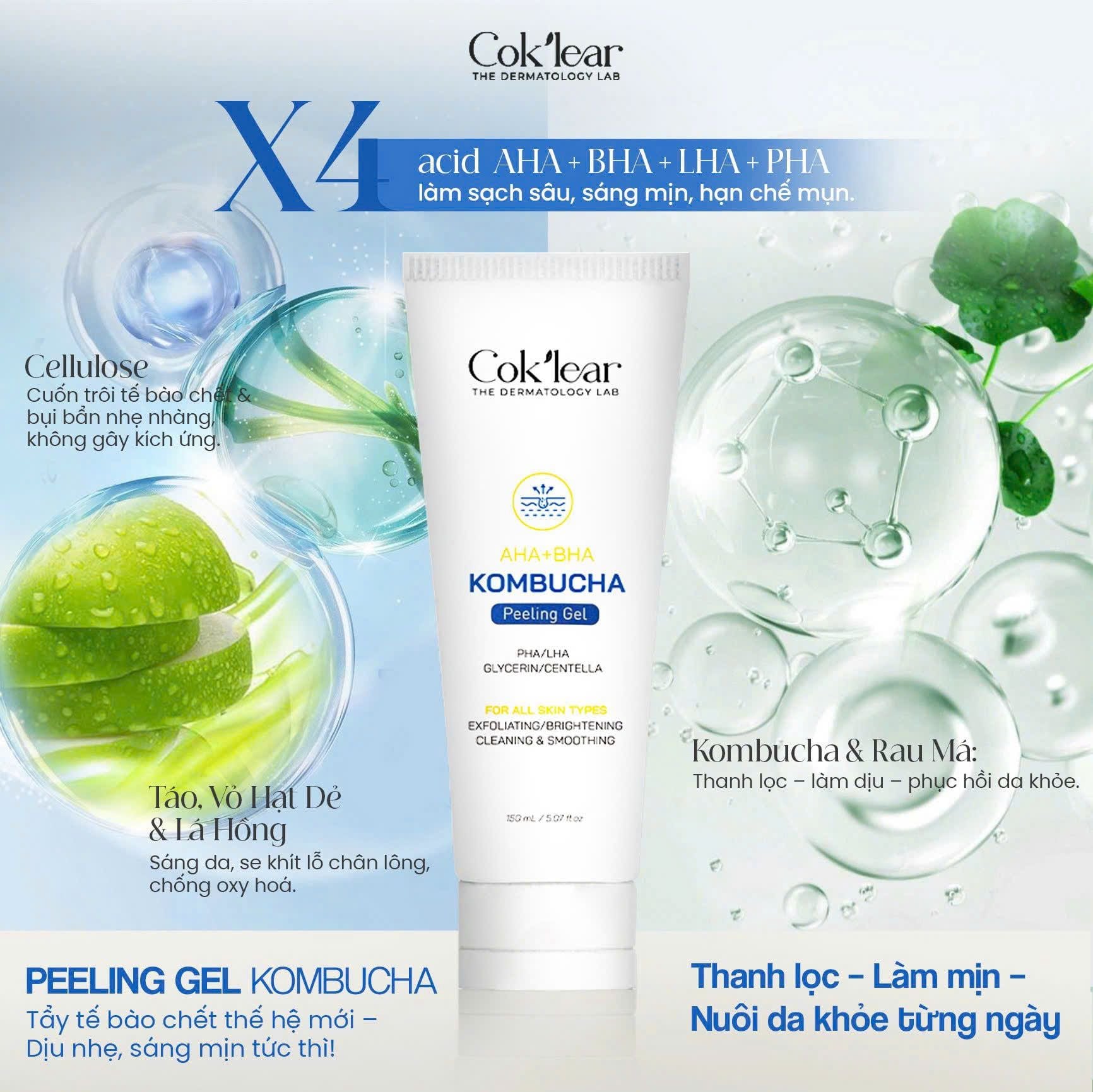 Chúng tôi tự hào mang đến dòng tẩy da chết Cok’lear Kombucha nhập khẩu chính ngạch: